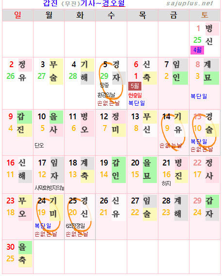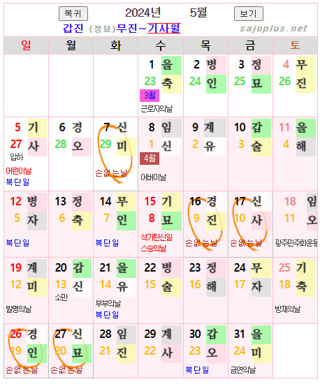 ❚ 양력 2024년 5월의 [손없는날]