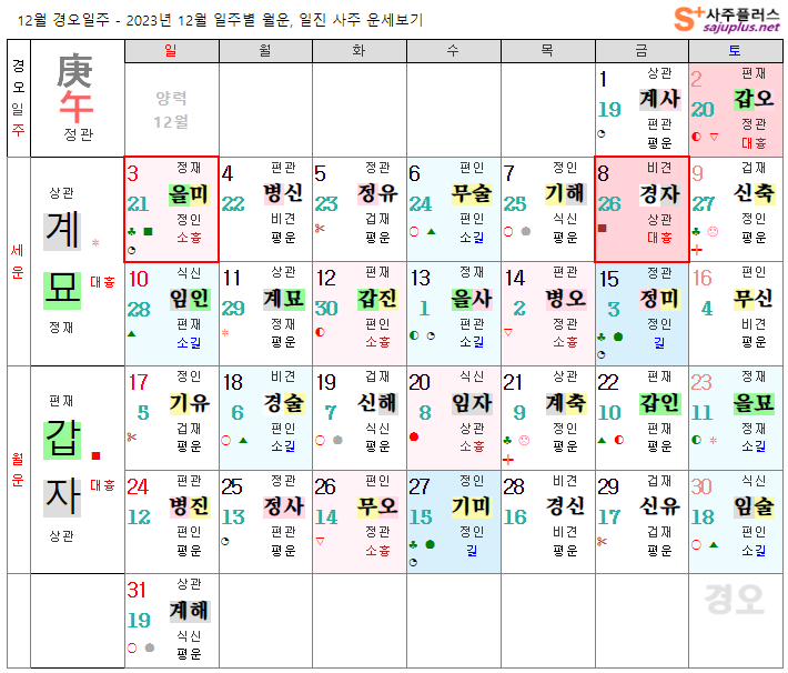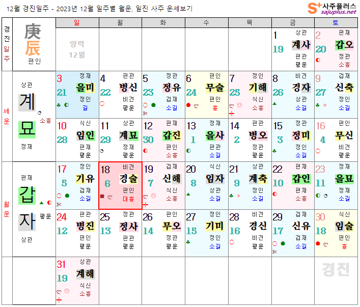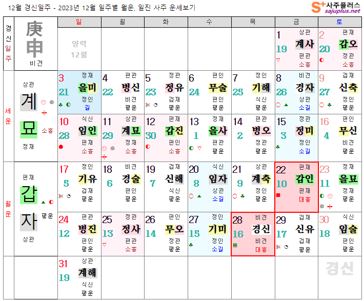 경금일간 12월운세-2023년 12월(갑자월) 일주운세 월운세, 일진운세 사주보기 운세보기