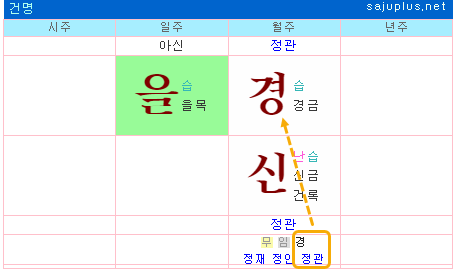 월간에 정관이 위치하여 정관격이 이루어지면, 일간은 명예지향적이면서 안정을 추구하게 됩니다. 따라서, 급격한 가정이나 직업면에서 변화나 변동을 꺼리게 됩니다. 안정을 추구하는 성향이라 강한 추진력이나 승부욕은 부족하지만, 도덕이나 규율을 중시하고 직장이나 가정이라는 울타리에 안주하려는 성향이 나타납니다.