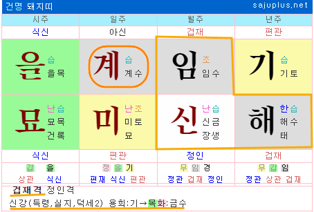 연지,월지, 월간이 일간의 세력이라 신강한 명조에 해당합니다.