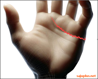 감정선이 짧으면 비판적인 성향이 강하고, 그 끝이 아래로 향하는 경우는 비관적인 성향이 강한 것으로 봅니다. 의지가 강하지만, 인정이 부족하기 쉽습니다. 감정선이 너무 짧으면 냉정한 면이 강해, 다소 주의가 필요합니다.