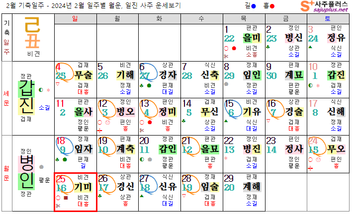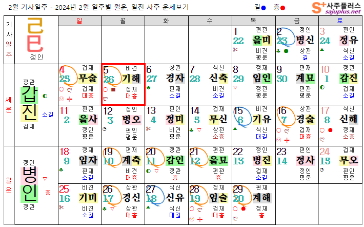 기토일간 2월운세-2024년 2월(병인월) 일주운세 월운세, 일진운세 사주보기 운세보기