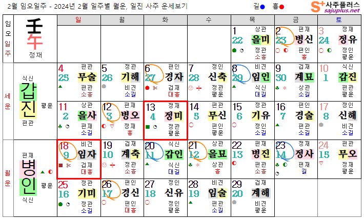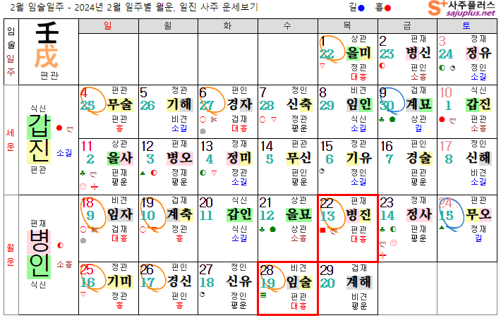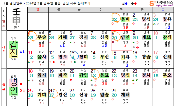 임수일간 2월운세-2024년 2월(병인월) 일주운세 월운세, 일진운세 사주보기 운세보기