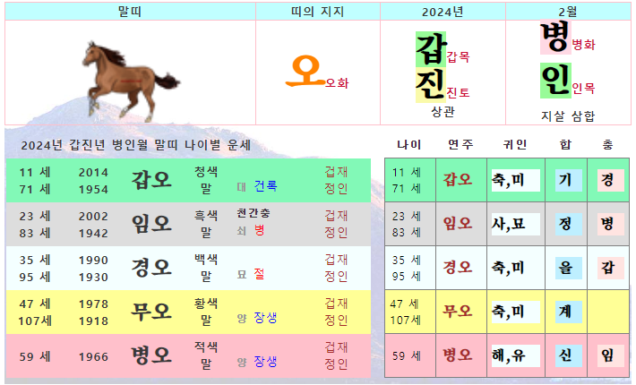 2월 말띠 운세 - 2024년 2월 갑진년 병인월 띠별 연령별 사주 운세보기
