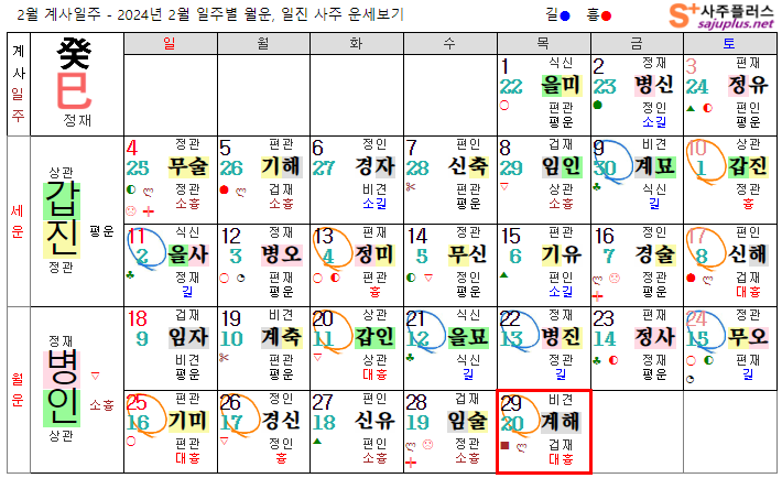 계수일간 2월운세-2024년 2월(병인월) 일주운세 월운세, 일진운세 사주보기 운세보기