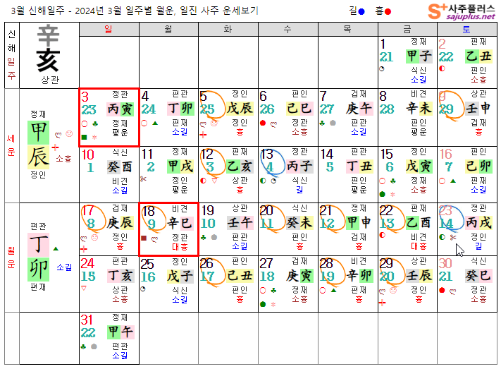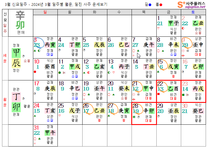신금일간 3월운세-2024년 3월(정묘월) 일주운세 월운세, 일진운세 사주보기 운세보기
