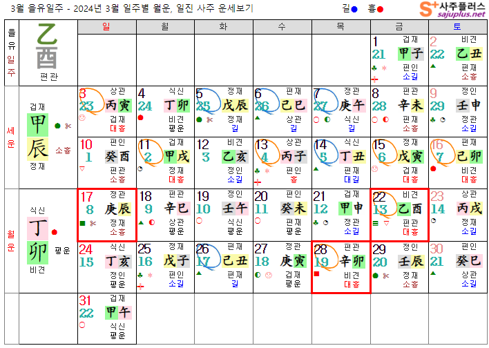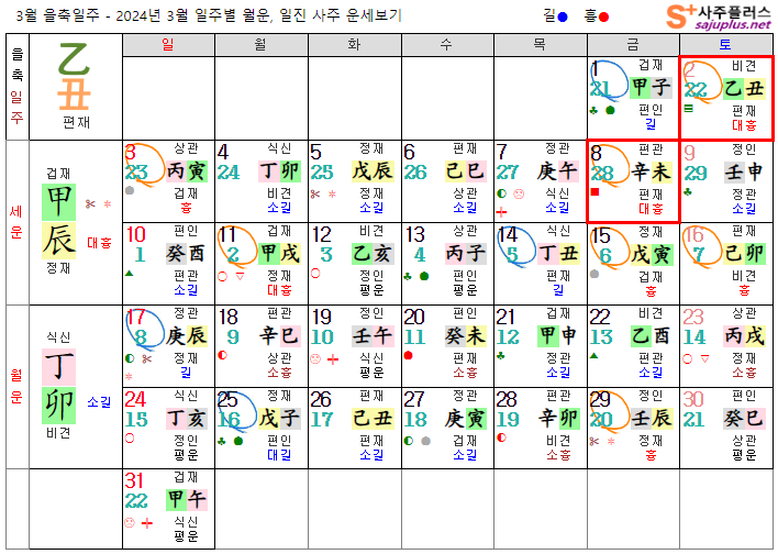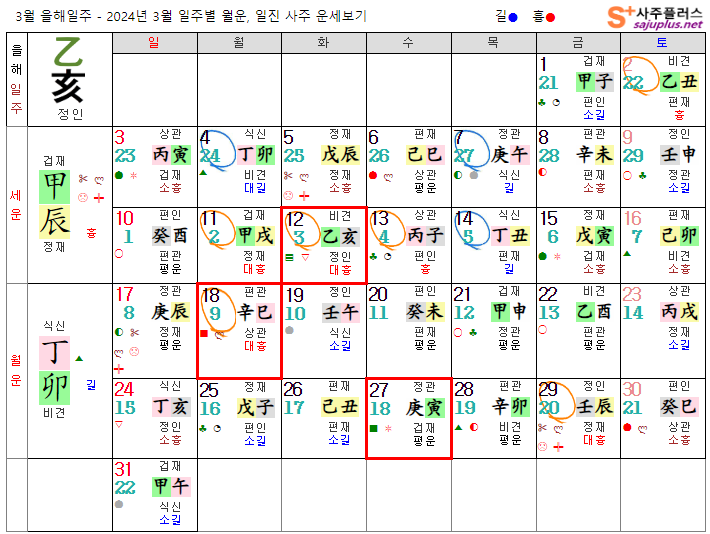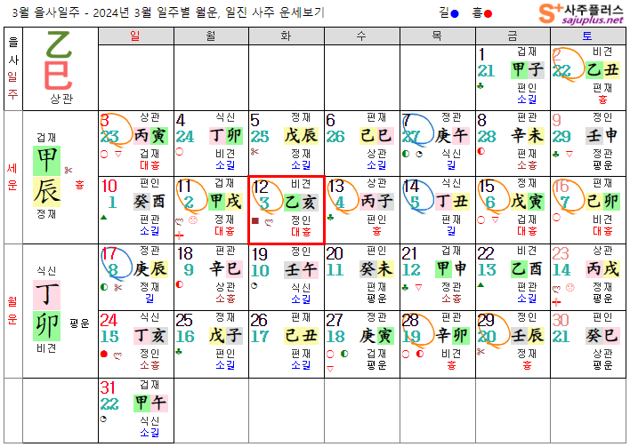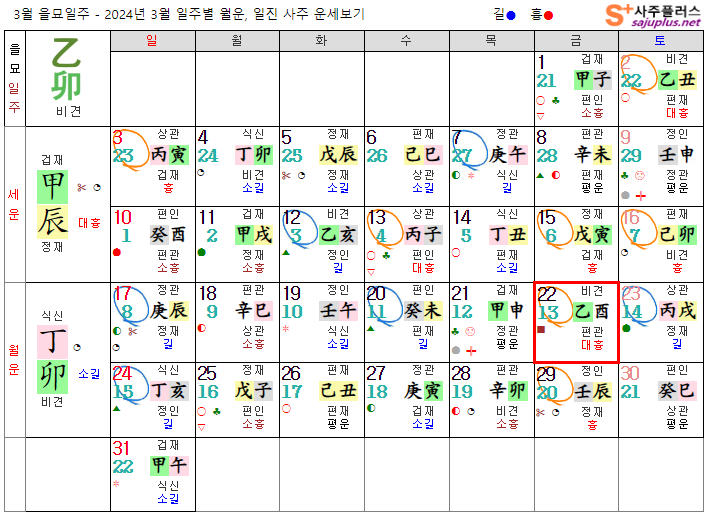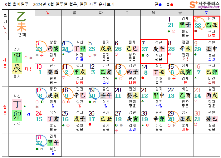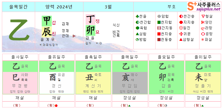 을목일간 3월운세-2024년 3월(정묘월) 일주운세 월운세, 일진운세 사주보기 운세보기