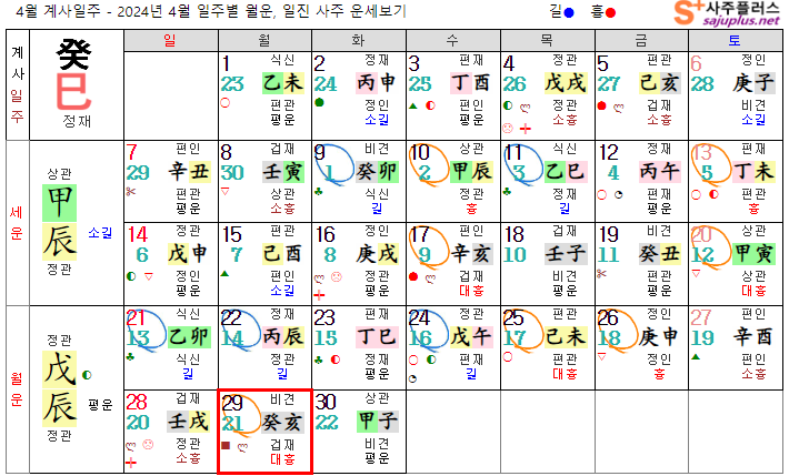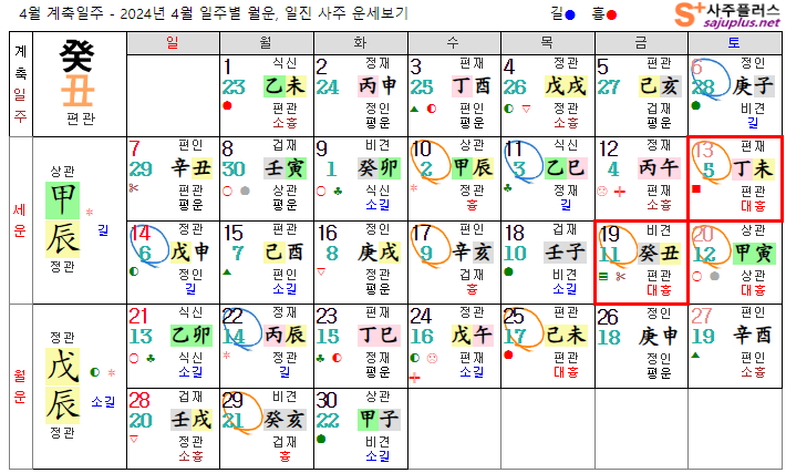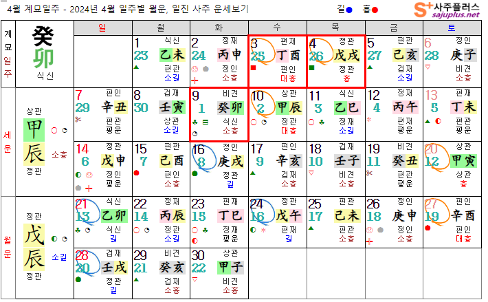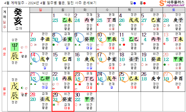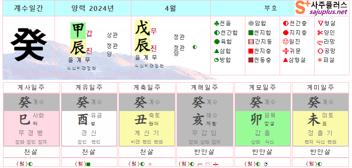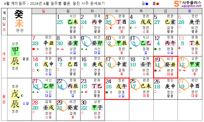 계수일간 4월운세-2024년 4월(무진월) 일주운세 월운세, 일진운세 사주보기 운세보기