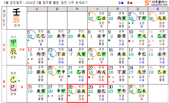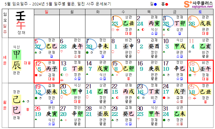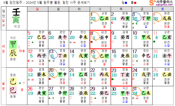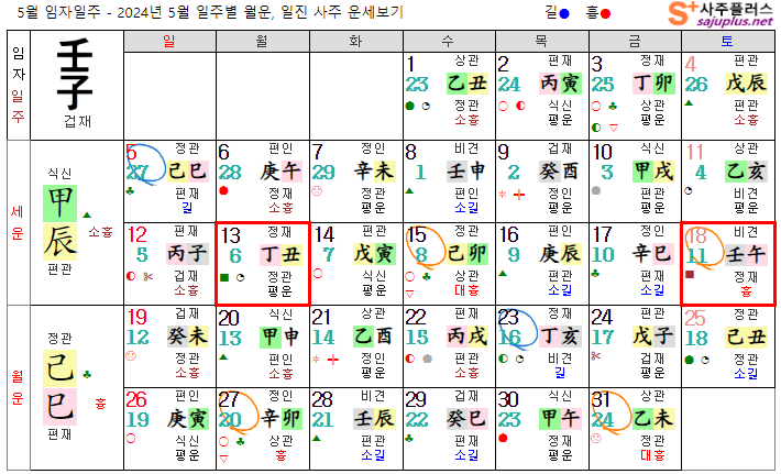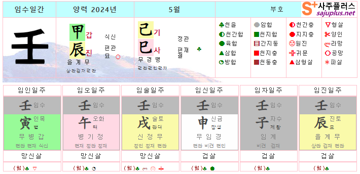 임수일간 5월운세-2024년 5월(기사월) 일주운세 월운세, 일진운세 사주보기 운세보기