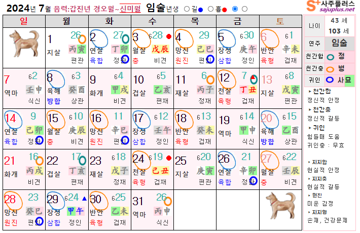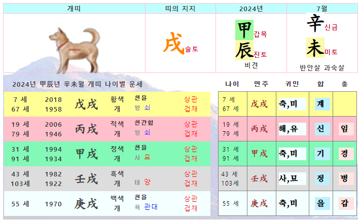 7월 양띠 운세 - 2024년 7월 갑진년 신미월 띠별 연령별 사주 운세보기