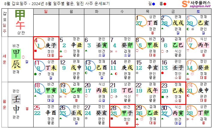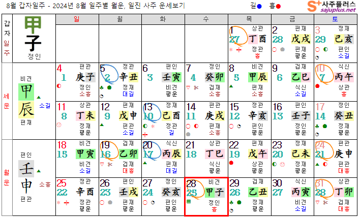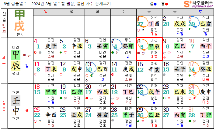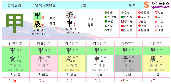 갑목일간 8월운세-2024년 8월(임신월) 일주운세 월운세, 일진운세 사주보기 운세보기