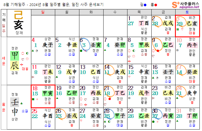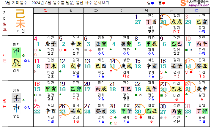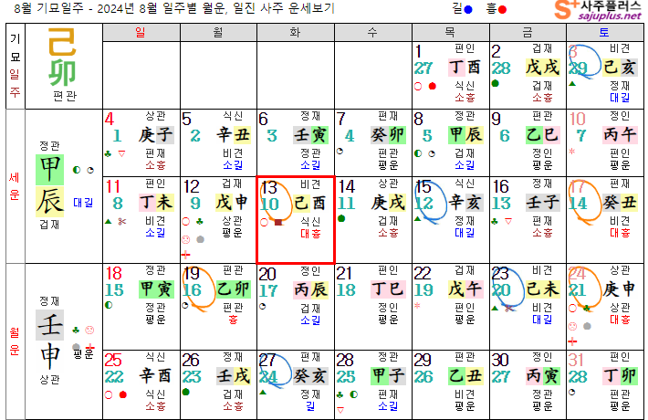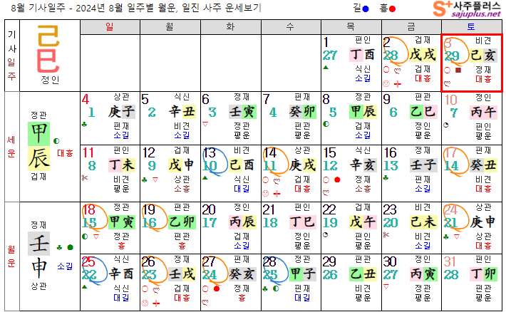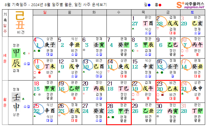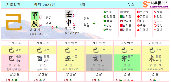 기토일간 8월운세-2024년 8월(임신월) 일주운세 월운세, 일진운세 사주보기 운세보기