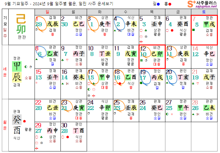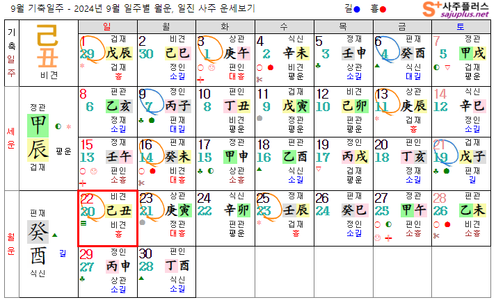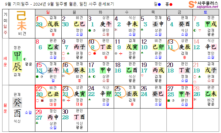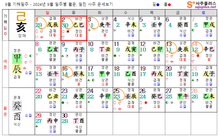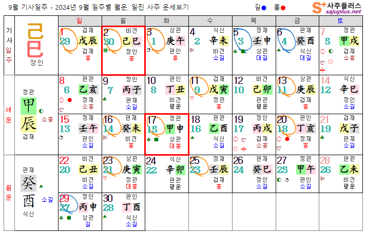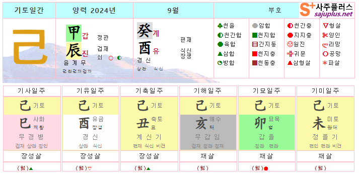 기토일간 9월운세-2024년 9월(계유월) 일주운세 월운세, 일진운세 사주보기 운세보기