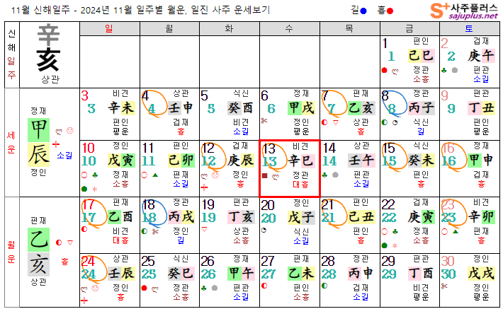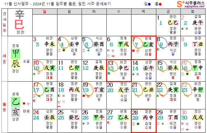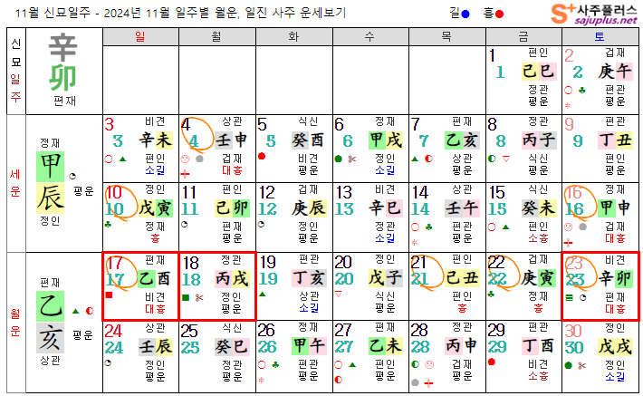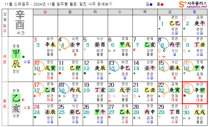 신금일간 11월운세-2024년 11월(을해월) 일주운세 월운세, 일진운세 사주보기 운세보기