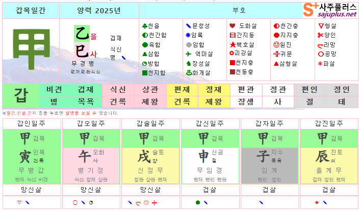 갑목일간 을사년운세-2025년(을사년) 갑목일간 세운, 1년신수, 사주보기, 운세보기
