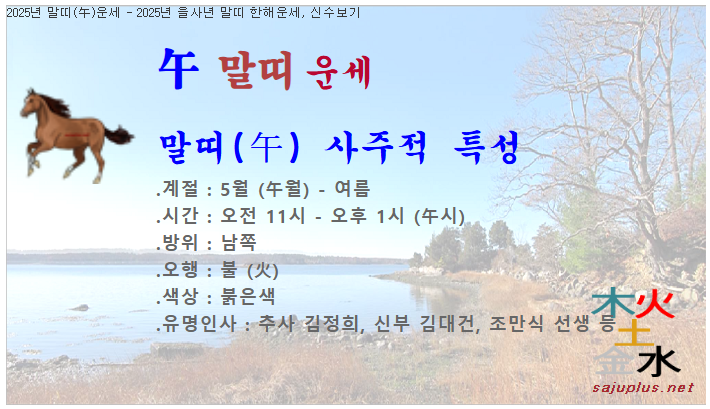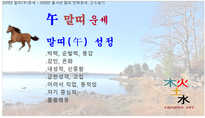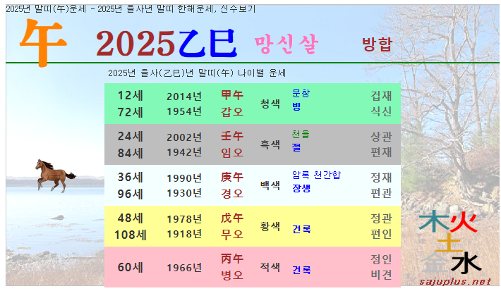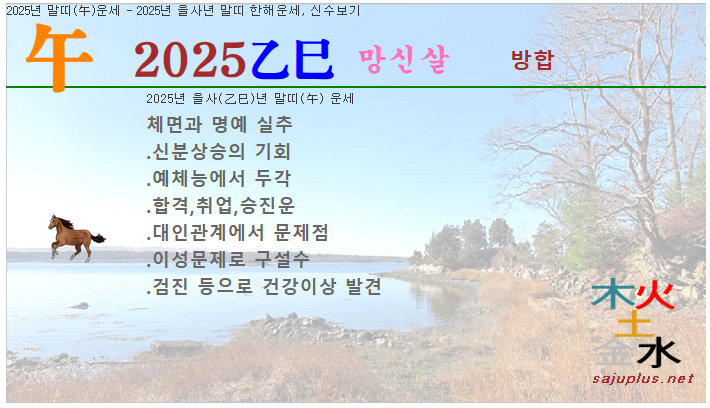 2025년 말띠운세 - 2025년 을사년 말띠 한해운세, 1년신수, 올해사주, 신년운세