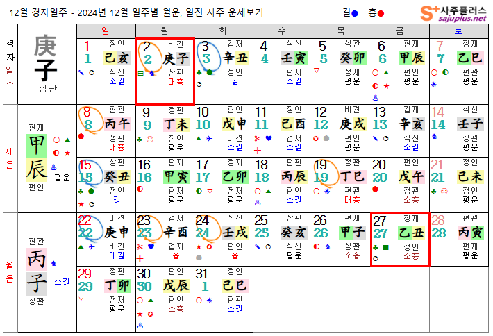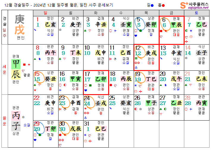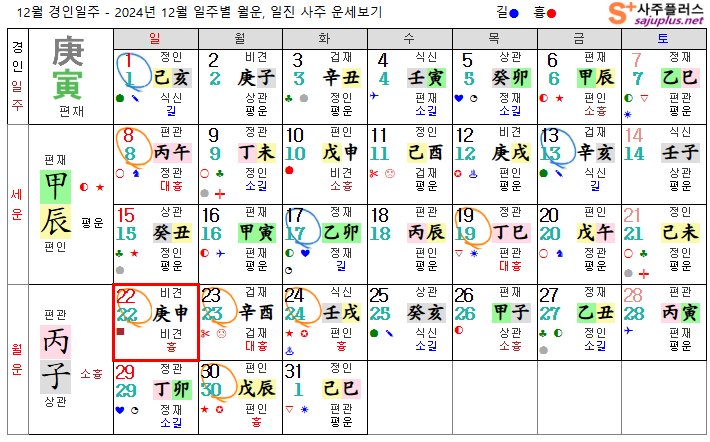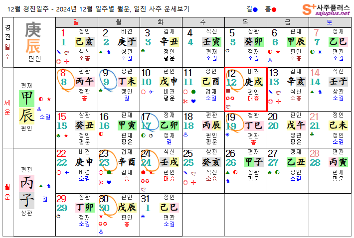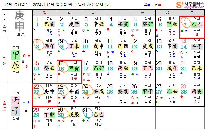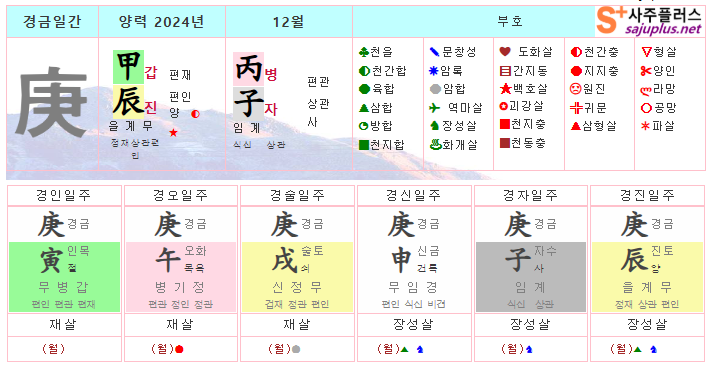 경금일간 12월운세-2024년 12월(병자월) 일주운세 월운세, 일진운세 사주보기 운세보기