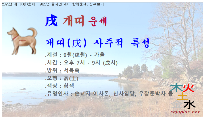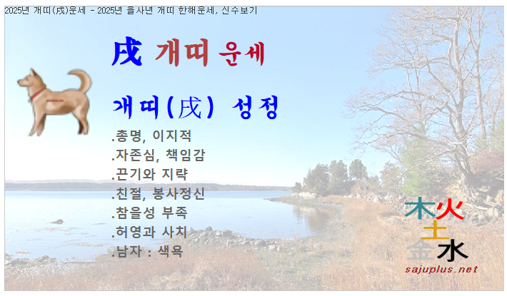 2025년 개띠운세 - 2025년 을사년 개띠 한해운세, 1년신수, 올해사주, 신년운세