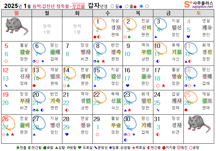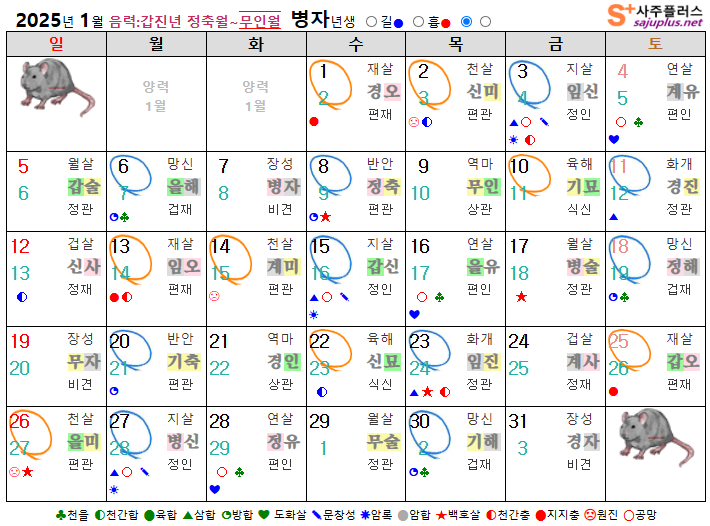 1월 쥐띠 운세 - 2025년 1월 갑진년 정축월 띠별 연령별 사주 운세보기