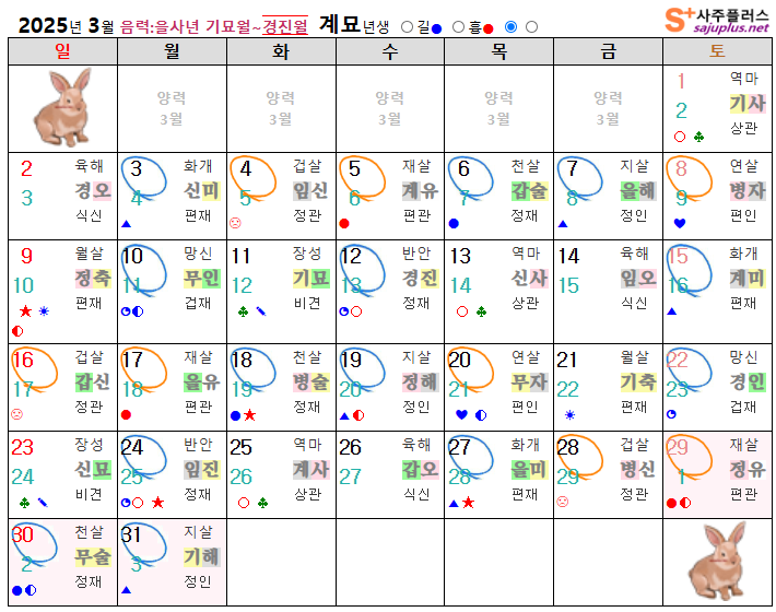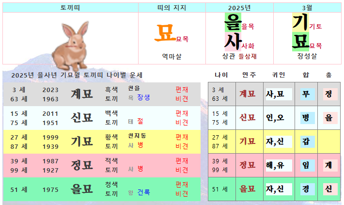 ❚ 신묘년생(15세,75세) 토끼띠 일진 운세