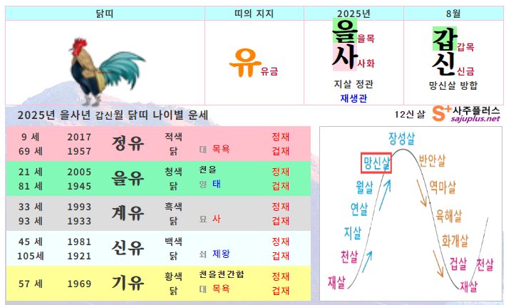 ▸닭띠생 신살 (양력 8월 일진)