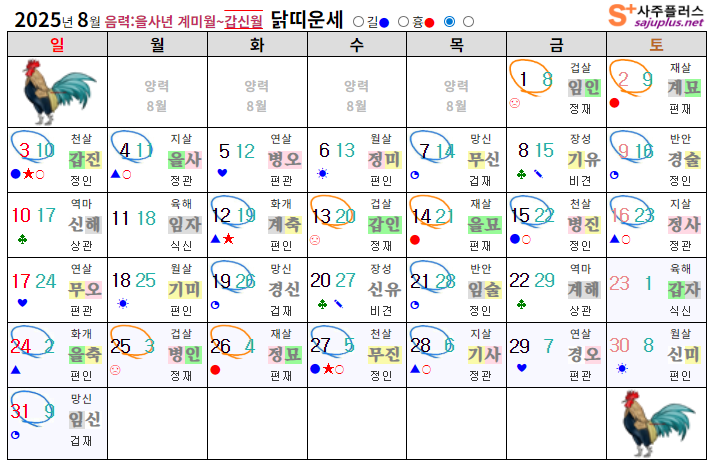 ▸닭띠생 생극제화 (양력 8월 일진)
