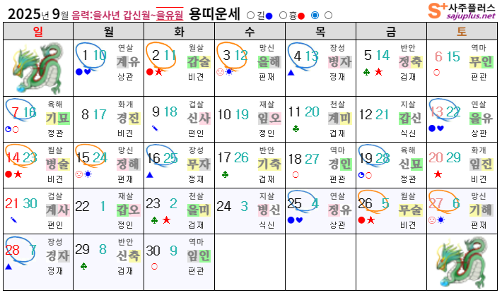 ▸용띠생 신살 (양력 9월 일진)