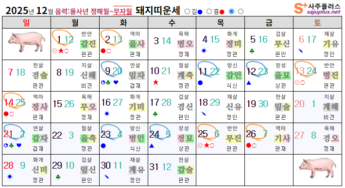 ▸돼지띠생 신살 (양력 12월 일진)