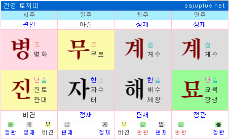 남명사주에서 일지가 정재이면 바람을 피우지만 가정은 지키는 경우가 되고, 일지가 편재이면 항시 다른여자에게 눈길을 주거나 외도하는 경우가 생깁니다. 알뜰한 정재와 일확 천금의 편재가 혼잡한 경우라, 직장생활을 하다가도 사업에 욕심이 나는 형국이라, 직업의 이동변동이 잦습니다.