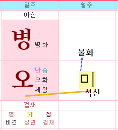 비견 병화, 상관 기토, 겁재 정화