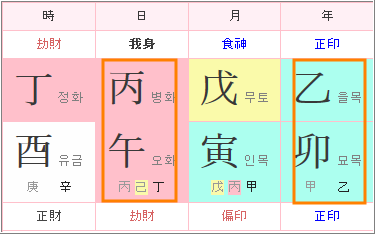 - 연간의 오행과 연지의 오행이 같은 경우를 말합니다.