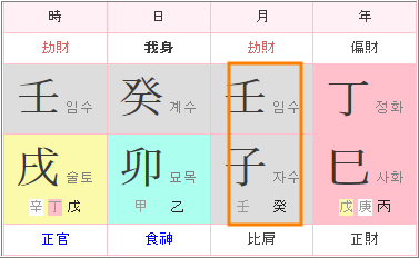 - 월간의 오행과 월지의 오행이 같은 경우를 말합니다.