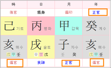 - 위에서 예시한 사주는 전형적인 관살혼잡 사주에 속합니다.