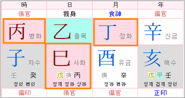 위의 경우는 정화가 수 오행으로 둘러싸인 경우입니다.