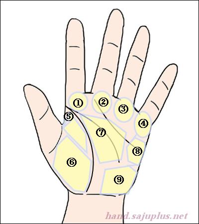 손바닥의 부위별로 조금씩 도톰한 살집 부위를 구(언덕)이라 합니다.