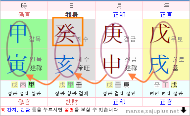 이처럼 운기의 흐름이 좋은 경우는 기신일 경우도 좋은 작용을 한다고도 봅니다.