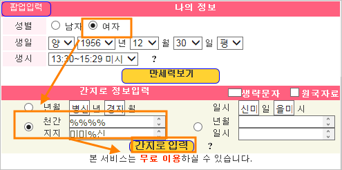 참고 : 천간 지지의 입력은 시->일->월->년 순입니다.