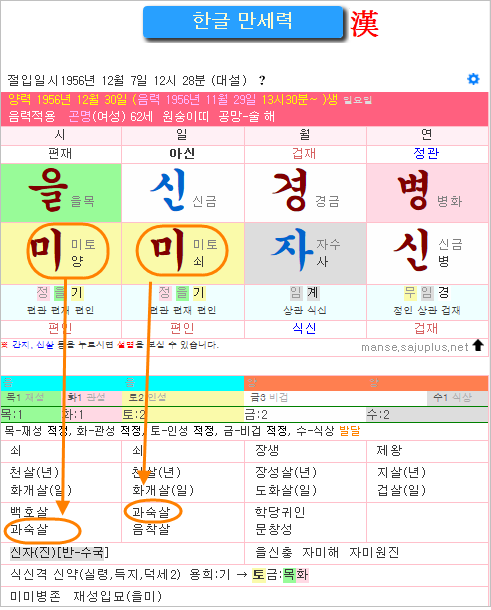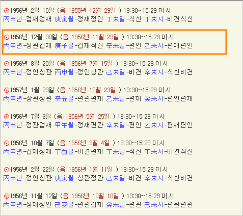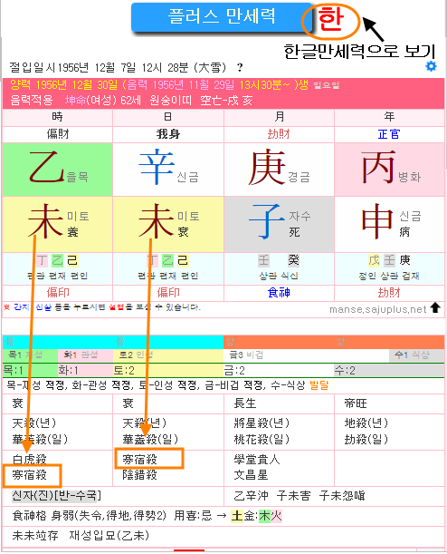똑같은 자료를 한글 만세력으로 볼때의 화면입니다.