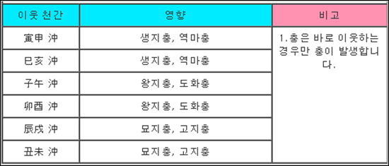 .[일지와 충]은 위 조견표를 참고하시면 되고 여기서는 갑자일주의 [자]와 충이 되는 [오]가 됩니다.