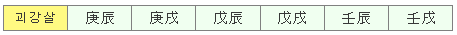 .괴강살은 경술(庚戌), 경진(庚辰), 임진(壬辰), 임술(壬戌), 무진(戊辰), 무술(戊戌)이 됩니다.